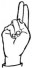 На ћирилици написано РАДНА РАСЈАНИН састоји се из 13 слова [?]. Исписано ћириличном једноручном азбуком за глувонеме: